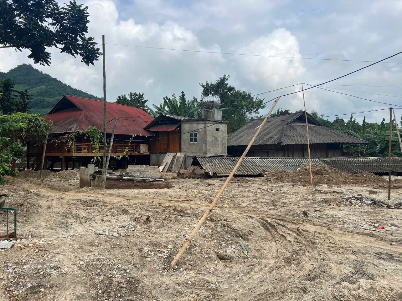 Cụ thể, UBND xã Văn Bàn cho biết ngày 29-30/9, ảnh hưởng của bão Bualoi, 30 ngôi nhà ở thôn Làng Chút bị nước lũ nhấn chìm, một số bị đổ sập. Lũ rút để lại hơn 100.000 m3 cát sỏi, dày 2-3 m, phủ kín đến mái nhà dân, bồi lấp ruộng vườn, chặn dòng chảy của suối.
