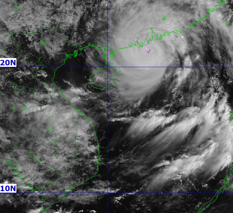 Hình ảnh mắt bão nhìn từ mây vệ tinh sáng 24/9 (Nguồn: NCHMF).