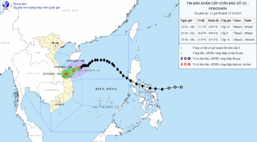 Toàn cảnh bão số 12 Fengshen, ba tác nhân tạo \’túi bom nước\’ dội xuống miền TrungBão số 12 (Fengshen) di chuyển vào khu vực biển TP Huế – Quảng Ngãi trong chiều nay (22/10). Mưa lớn bắt đầu trút xuống Quảng Trị – Quảng Ngãi, nguy cơ ngập lụt, lũ quét tại hơn 100 xã, phường.